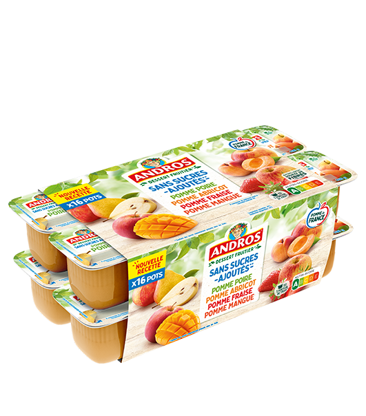 Desserts fruitiers panachés Pomme, Poire, Abricot et Fraise x16 Desserts fruitiers panachés Pomme, Poire, Abricot et Fraise x16 -