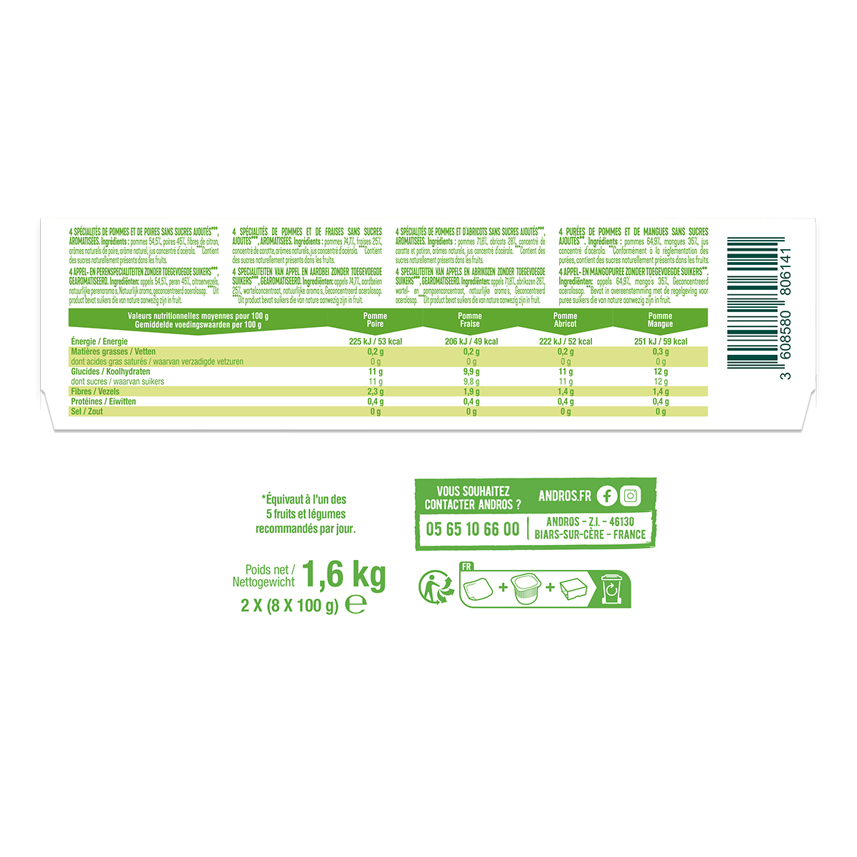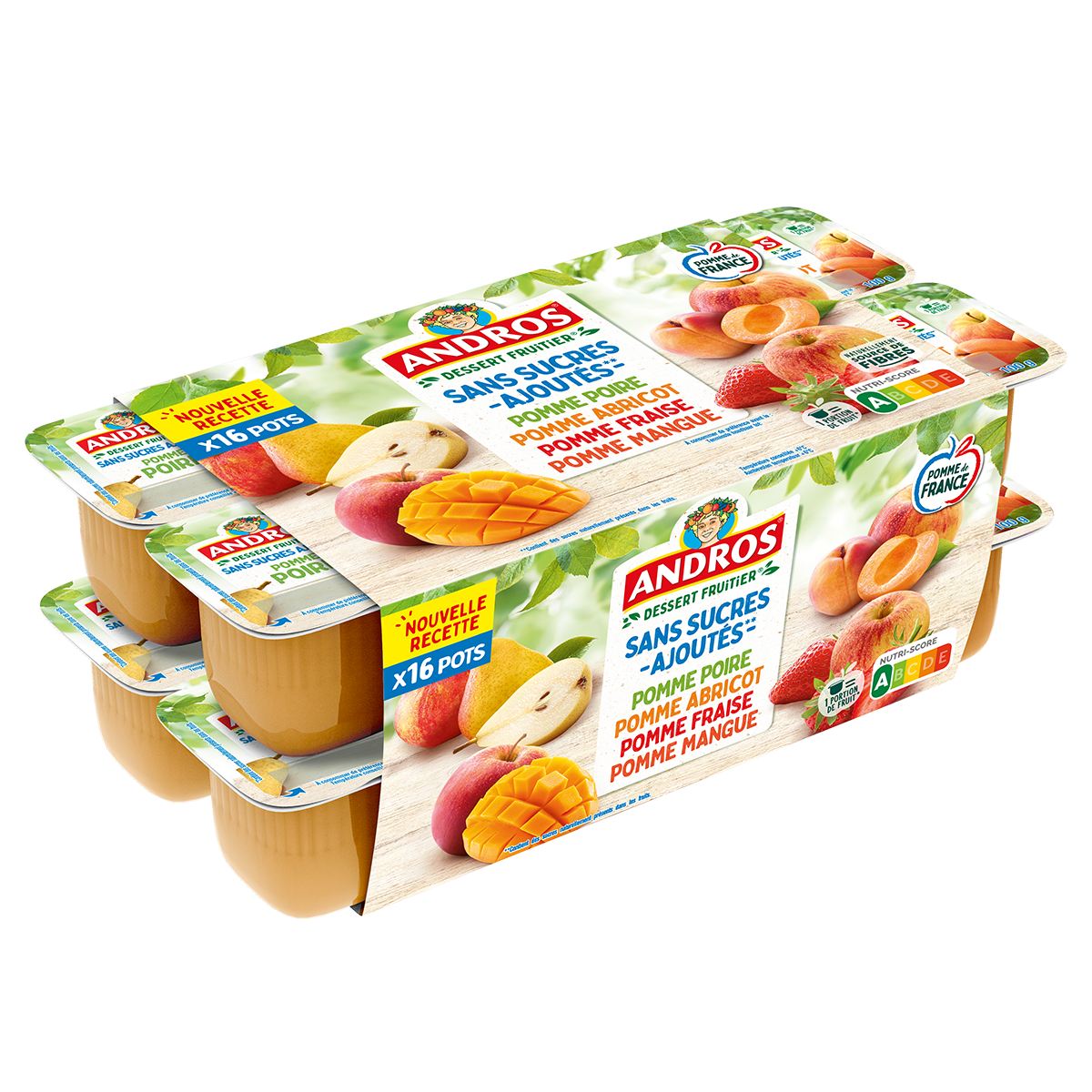 Desserts fruitiers panachés Pomme, Poire, Abricot et Fraise x16 Desserts fruitiers panachés Pomme, Poire, Abricot et Fraise x16 -